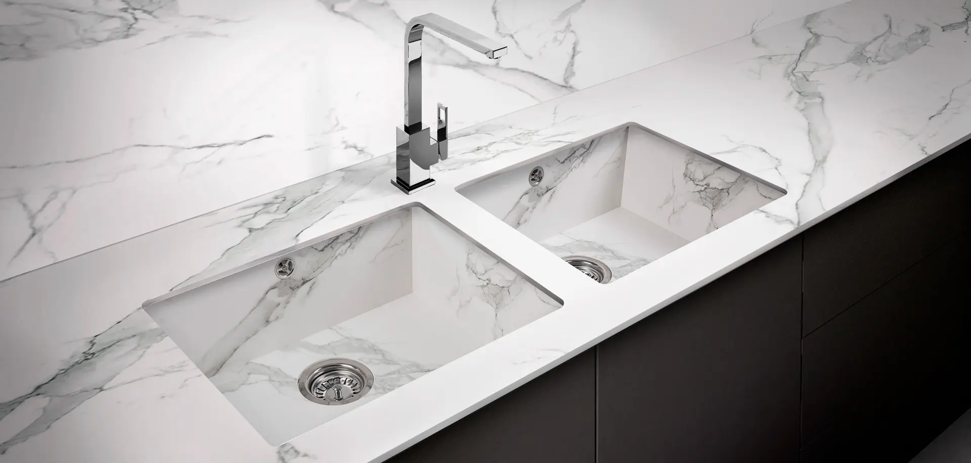 Nuestro sistema patentado SBS permite la elaboración de fregaderos y lavabos utilizando planchas de piedra tanto natural como sintéticas, esto permite ofrecer una amplia gama de posibilidades al cliente final.